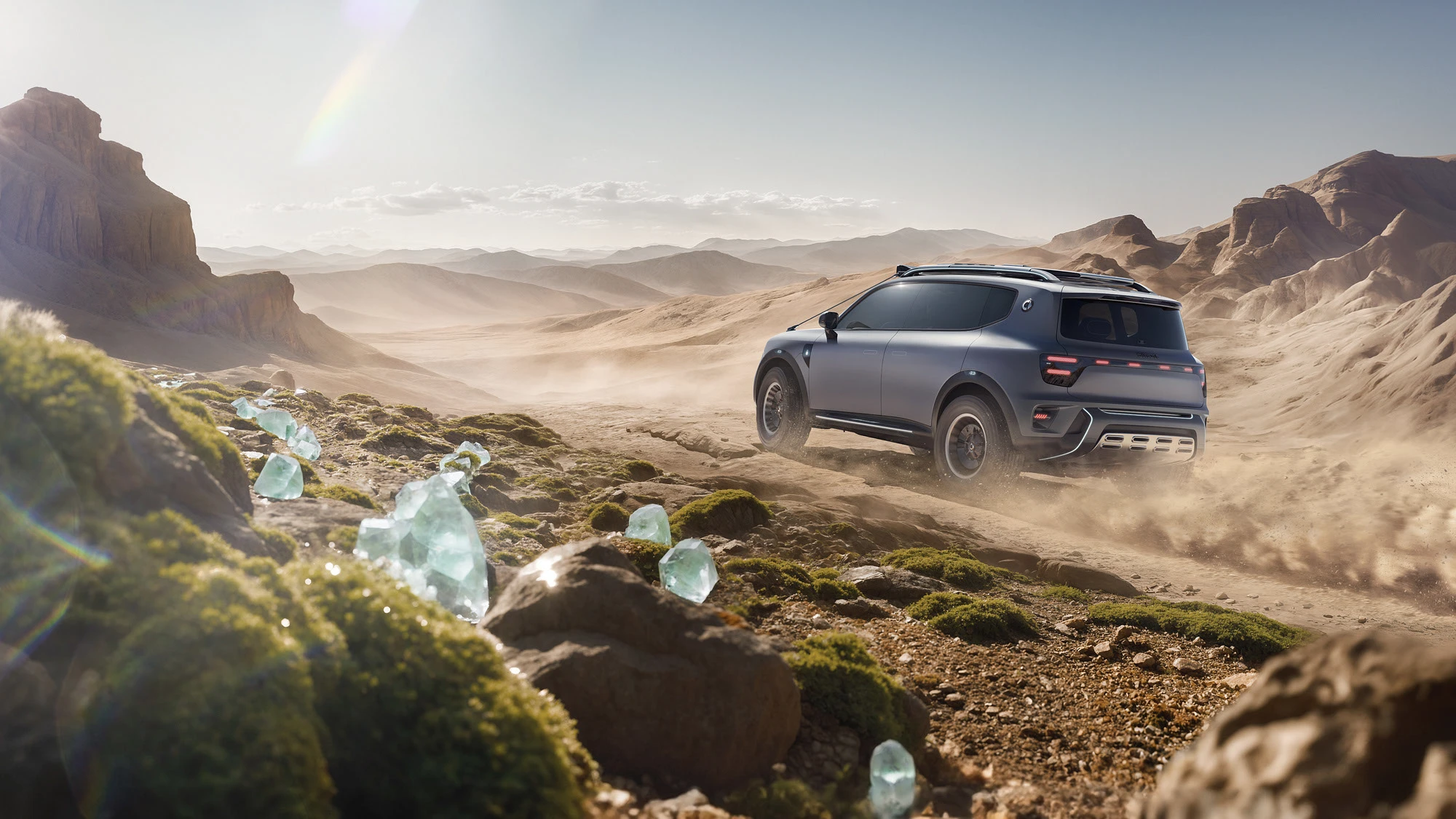 These images are crafted to create a harmonious balance between the car and its surroundings, allowing its design to stand out in pristine and tranquil landscapes. To enhance the visual narrative, we explored different times of day, capturing the car in various lighting conditions to highlight its beauty at every hour.